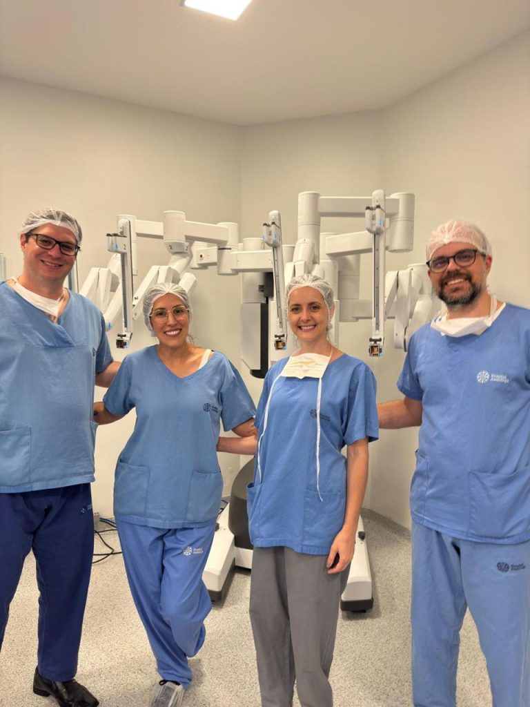 A cirurgia foi realizada pela Dra. Bárbara Fiorentin Giordani Gamba, integrando a equipe robótica do hospital. Para a médica, o momento representa uma conquista profissional e institucional.