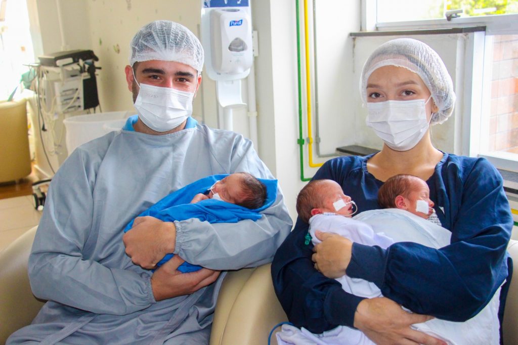 De acordo com Dr. Reinaldo, os três bebês nasceram bem do ponto de vista respiratório, sem necessidade de auxílio imediato nesse sentido, e seguem em acompanhamento na UTI Neonatal para ganho de peso e evolução clínica.